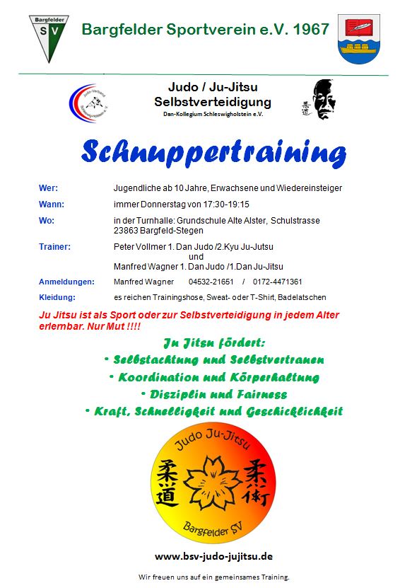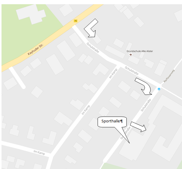 Das Training findet zu folgenden Terminen in der Sporthalle der "Grundschule Alte Alster" Schulstrasse, 23863 Bargfeld-Stegen